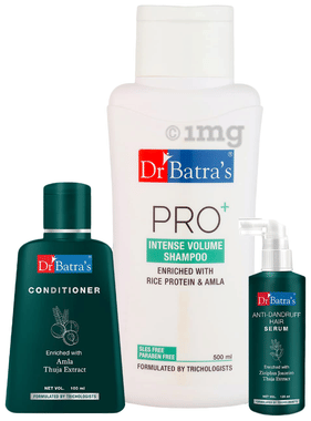 Dr Batra's Combo Pack of Anti-Dandruff Hair Serum 125ml, Conditioner 100ml and Pro+ Intense Volume Shampoo 500ml