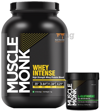 Muscle Monk Combo Pack of Whey Intense High Strength Whey Protein Blend Royal Chocolate 1kg & L-Glutamine Unflavoured 100gm