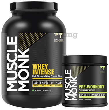 Muscle Monk Combo Pack of Whey Intense High Strength Whey Protein Blend Creamy Vanilla 1kg & Pre-Workout Green Apple 300gm