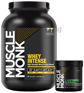 Muscle Monk Combo Pack of Whey Intense High Strength Whey Protein Blend Creamy Vanilla 1kg & L-Glutamine Unflavoured 100gm