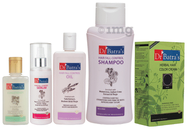 Dr Batra's Combo Pack of Hair Fall Control Serum 125ml, Conditioner 100ml, Hair Fall Control Oil 200ml, Hair Fall Control Shampoo 500ml and Herbal Hair Color Cream 130gm Black