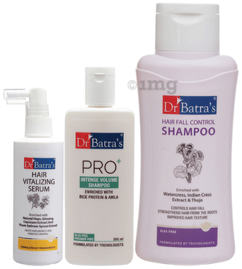 Dr Batra's Combo Pack of Hair Vitalizing Serum 125ml, Pro+ Intense Volume Shampoo 200ml and Hair Fall Control Shampoo 500ml