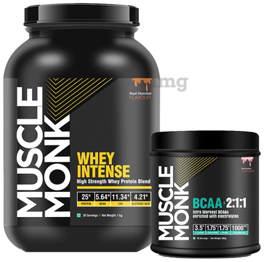 Muscle Monk Combo Pack of Whey Intense High Strength Whey Protein Blend Royal Chocolate 1kg & BCAA 2:1:1 Watermelon 300gm