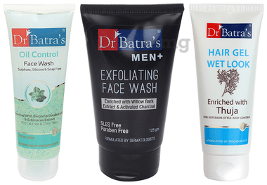 Dr Batra's Combo Pack of Oil Control Face Wash 100gm, Men+ Exfoliating Face Wash 125gm and Hair Gel Wet Look 100gm