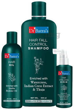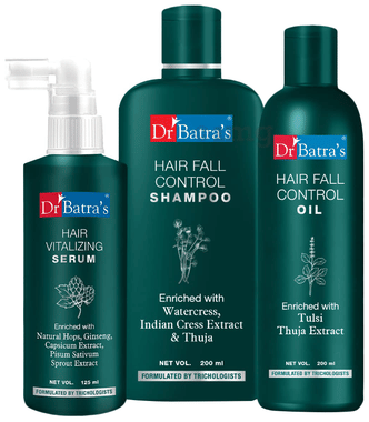 Dr Batra's Combo Pack of Hair Vitalizing Serum 125ml, Hair Fall Control Oil 200ml and Hair Fall Control Shampoo 200ml
