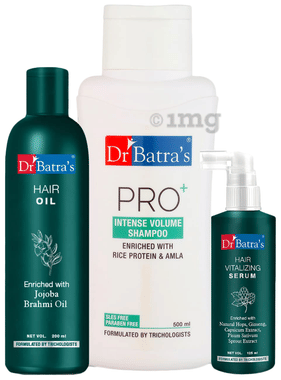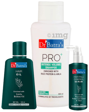 Dr Batra's Combo Pack of Hair Fall Control Serum 125ml, Hair Oil 100ml and Pro+ Intense Volume Shampoo 500ml