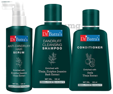 Dr Batra's Combo Pack of Dandruff Cleansing Shampoo 100ml, Conditioner 100ml and Anti-Dandruff Hair Serum 125ml