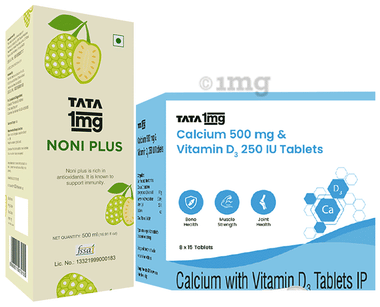 Combo Pack of Tata 1mg Noni Juice Plus with Rich Antioxidant (500ml) & Tata 1mg Calcium 500mg & Vitamin D3 250IU Tablet (15)