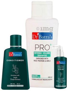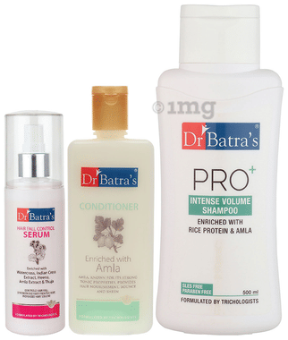 Dr Batra's Combo Pack of Hair Fall Control Serum 125ml, Conditioner 100ml and Pro+ Intense Volume Shampoo 500ml