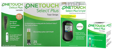 OneTouch Combo Pack of Select Plus Simple Glucometer with 10 Free Strips Black, Select Plus Test Strip (Only Strips) Test Strip Green & Delica Plus Lancets (Only Lancets) 30G