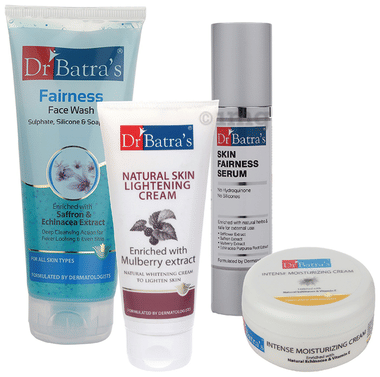 Dr Batra's Combo Pack of Fairness Face Wash 200gm, Natural Skin Lightening Cream 100gm, Skin Fairness Serum 50gm and Intense Moisturizing Cream 100gm