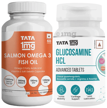 Combo Pack of Tata 1mg Glucosamine HCL Advanced Tablets & Salmon Omega 3 Fish Oil Capsule (60 Each)