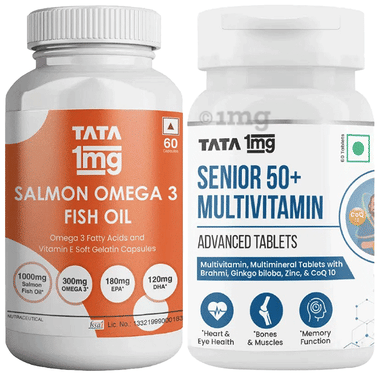 Combo Pack of Tata 1mg Senior 50+ Multivitamin Advanced Tablets & Salmon Omega 3 Fish Oil Capsule (60 Each)