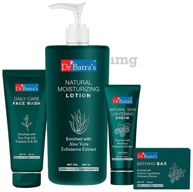Dr Batra's Combo Pack of Bathing Bar 125gm, Natural Skin Lightening Cream 100gm, Face Wash Daily Care 200gm and Natural Moisturizing Lotion 400ml