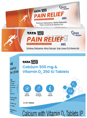 Combo Pack of Tata 1mg Calcium 500mg & Vitamin D3 250IU Tablet (15) & Tata 1mg Pain Relief Gel (75gm)