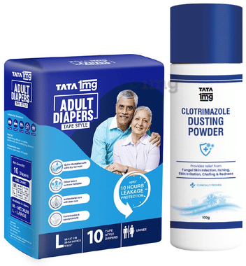 Combo Pack of Tata 1mg Adult Diaper Tape Style Large (10) & Tata 1mg Antifungal Dusting Powder (100gm)