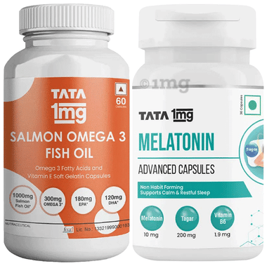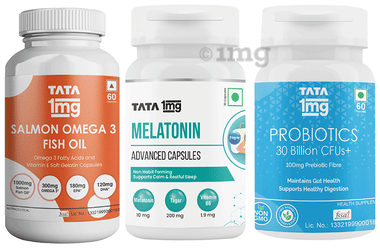Combo Pack of Tata 1mg Melatonin 10 mg Advance Capsule (30),Salmon Omega 3 Fish Oil Capsule (60) & Probiotics 30 Billion CFUs+ Capsule (60)
