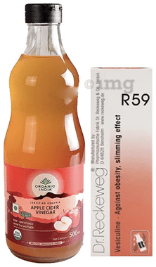 Weight Management Combo of Organic India Raw, Unfiltered Apple Cider Vinegar with Mother of Vinegar 500ml and Dr. Reckeweg R59 Obesity and Slimming Drop 22ml