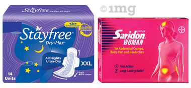 Stayfree Dry-Max All Night Ultra-Dry Pads XXL (14) and Saridon Woman Tablet (5)