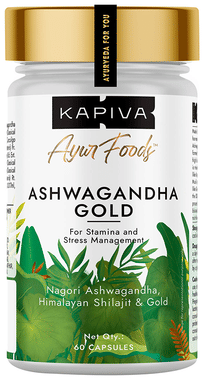 Kapiva Ayur Foods Ashwagandha Gold Capsules with Shilajit & Gokshura | For Stamina & Stress Management