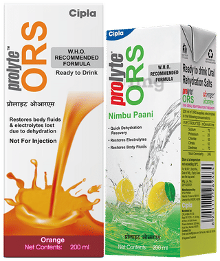 Prolyte ORS Combo Pack of Ready To Drink for Body Fluid & Electrolyte Replenishment Flavour Orange & Nimbu Paani (200ml Each)