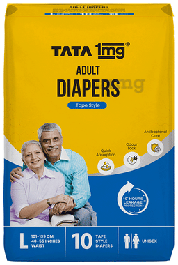 Tata 1mg Adult Diaper Tape Style | Unisex, Odour-Free, Leakproof, Refastening Tape | Size Large
