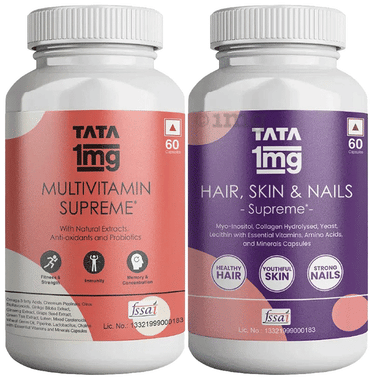 Combo Pack of Tata 1mg Multivitamin Supreme Capsule (60) & Hair, Skin & Nails Supreme Capsule (60)