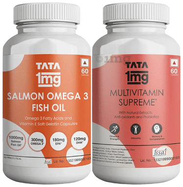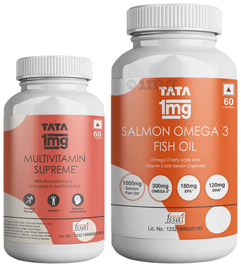 Combo Pack of Tata 1mg Multivitamin Supreme Capsule & Salmon Omega 3 Fish Oil Capsule (60 Each)