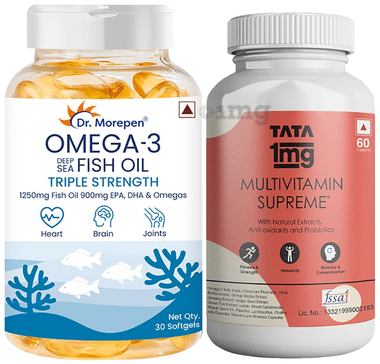 Combo Pack of Tata 1mg Multivitamin Supreme Capsule (60) & Dr. Morepen Omega 3 Deep Sea Fish Oil Triple Strength Softgel (30)