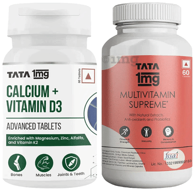 Combo Pack of Tata 1mg Calcium + Vitamin D3 Advanced Tablets (60) & Multivitamin Supreme Capsule (60)