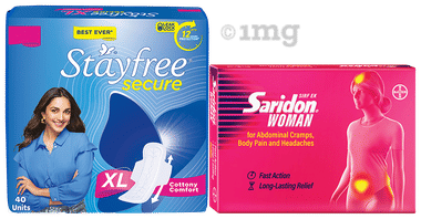 Combo pack of Stayfree Cottony Soft Cover Secure Sanitary Pads with Wings XL and Saridon Woman Tablet