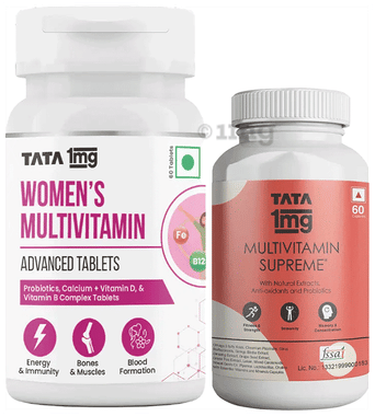 Combo Pack of Tata 1mg Women's Multivitamin Veg Tablet (60) & Tata 1mg Multivitamin Supreme, Zinc, Calcium and Vitamin D Capsule (60)