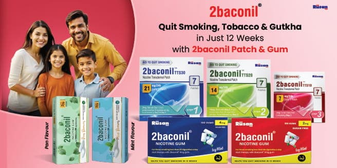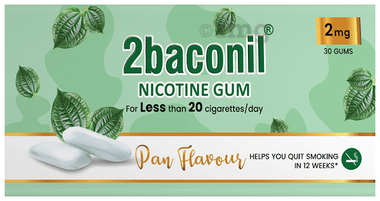 2baconil Nicotine Sugar Free Gums 2mg | Helps to Quit Smoking & Chewing Tobacco/Gutkha | Icy Mint