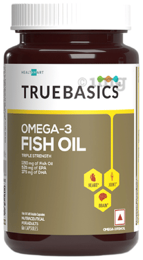 TrueBasics Omega 3 Triple Strength Fish Oil | for Brain, Heart & Joints | Soft Gelatin Capsule