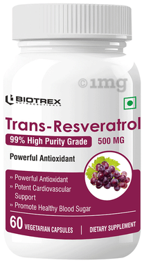 Biotrex Resveratrol 500mg for Heart Health, Anti-Ageing Support & Blood Sugar Balance | Capsule