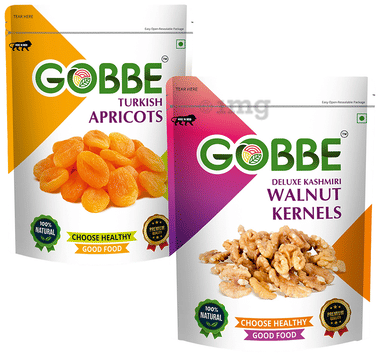 Combo Pack of Gobbe Turkish Apricots & Deluxe Kashmiri Walnut Kernels (200gm Each)