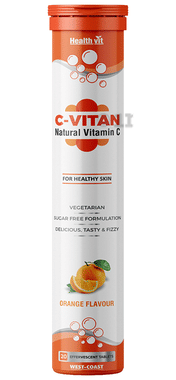 HealthVit C-Vitan with Natural Vitamin C 1000mg for Healthy Skin | Flavour Orange Effervescent Tablet