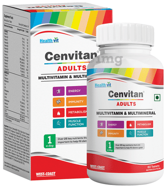 HealthVit Cenvitan Adults Multivitamin & Multimineral | For Energy, Metabolism, Immunity & Muscles | Tablet