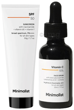 Virtual Combo Brand Combo Pack of Minimalist SPF 50 PA++++ Sunscreen (50gm) & 10% Vitamin C Face Serum (30ml)