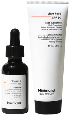 Combo Pack of Minimalist 10% Vitamin C Face Serum (30ml) & Light Fluid Face Sunscreen SPF 50 (50ml)