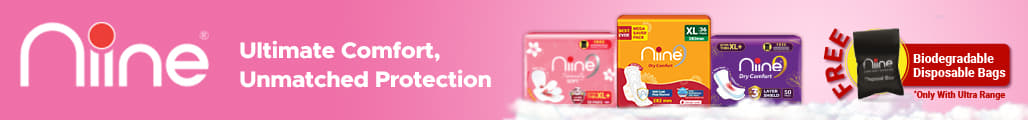 Niine Dry Comfort 3 Layer Shield Ultra Thin Sanitary Pads (50 Each) with Biodegradable Disposable Bags