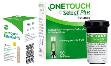One Touch Select Plus Test Strip (50) & Select Plus Simple Glucometer with 10 Free Strip & UltraSoft 2 Lancet (25 Each)
