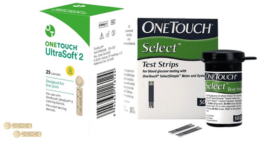 OneTouch 2 Box of Select Test Strip (50 Each) & 2 box of Ultrasoft 2 Lancet (25 Each)