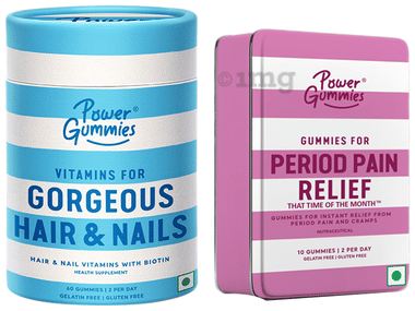 Power Gummies Combo Pack of Vitamins for Gorgeous Hair & Nails (60 Each) & Gummies for Period Pain Relief (10 Each)