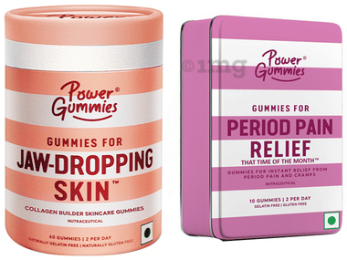 Power Gummies Combo Pack of Gummies for Jaw Dropping Skin (60 Each) & Gummied for Period Pain Relief (10 Each)