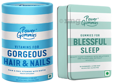 Power Gummies Combo Pack of Vitamins for Gorgeous Hair & Nails (60 Each) & Gummies for Blessful Sleep (10 Each)