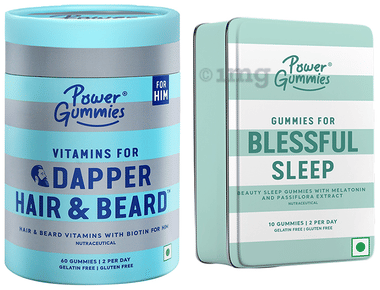 Power Gummies Combo Pack of Vitamins for Dapper Hair & Beard (60 Each) & Gummies for Blessful Sleep (10 Each)