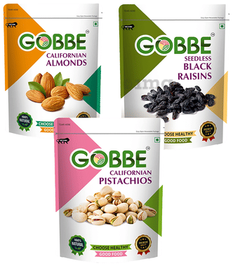 Combo Pack of Gobbe Californian Almonds, Seedless Black Raisins, Californian Pistachios (200gm Each)