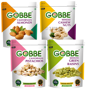 Gobbe Combo Pack of Almonds, Cashew, Pistachios & Green Raisins (200gm Each)