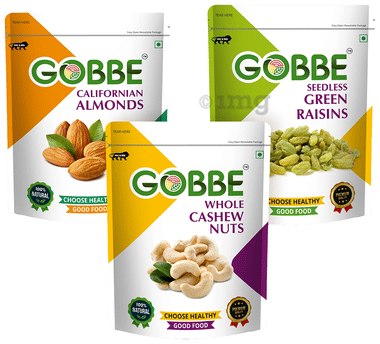 Gobbe Combo Pack of Almonds + Cashew + Green Raisins (200gm Each)